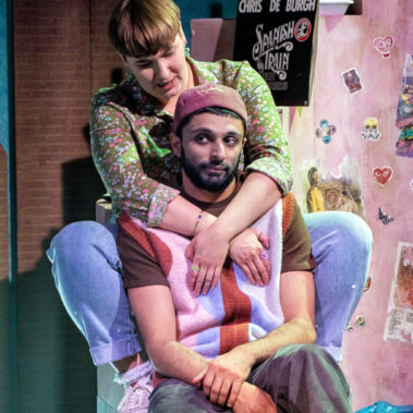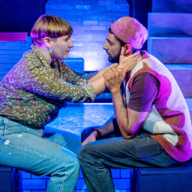 “Jane Lalljee’s colourful lighting shapes the shifting dynamic between the pair with careful, bold choices – one critical moment features red alarm-like flashing.” The Stage